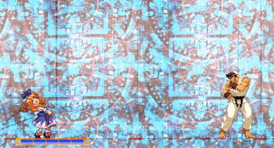 萃香は超必殺技(コスト)使う(例えば、三歩壊廃、超高密度燐禍術、施餓鬼縛りの術)の時、背景(透過の様子)最後の時、